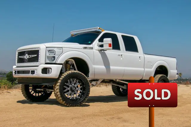 SOLD! SOLD!Up for sale is my 2013 ford f 250 Lariat, truck has every option besides heated seats and sunroof. Immaculate condition, truck has been detailed inside and out, even underneath the truck since the day I brought it home from Sunrise ford in Fontana CA. This was a 6 month build so all part are pretty much brand new, " pics to prove " The only reason I am selling it is to start a new project. No expense spared when building this truck. PLEASE READ BELOW FOR FULL PROJECT DETAILS - 27,000 Miles - Fully Loaded Crew Cab Short Bed Lariat - Black leather interior with center console - Navigation - Sirius radio - Power Sliding Rear Window EXTERIOR - All Chrome has been deleted and painted with factory ford paint, emblems, door handles, keyless entry grille, bumpers were powder coated for durability, Hitch and all brackets. - Custom headlights by Plain An Simple, all white with 6" rigid industries on top custom LED strips for blinkers and running lights, and projectors headlights. - Recon Tail Lights custom painted by Plain An Simple white and black with LED backup projector. - Two tone ford emblems white and black. - Limo Tint on all windows except front windshield. SUSPENSION - ICON Vehicle Dynamics 7"-9" coilover 2.5" lift with 4 link front. - ICON bypass shocks front and rear ( 2 tube ) 2.5" All powder coated white and gold. - One Up Offroad Axe truss, cross member and traction block kit on rear ( 6" ). All Powder coated white and gold. WHEELS - 24" x 11" American force fallouts / faceplates white gold and black. TIRES - 37" x 24" Toyo MT's have about 1,000 miles on them also included is a brand new spare to match. MISC PARTS - Banks Cold air intake. - Maghytech diff cover. - MBRP exhaust. - LED interior lights and license plate lights. - Custom top and bottom stainless grille powder coated white and black. - Rigid Industries 50" combo on roof - Rigid Industries 20" mounted on lower bumper. - Rigid Industries Q2 in fog light buckets. - Rigid Industries flush mount in rear bumper ALL RIGIDS ARE WHITE MARINE SERIES LIGHTS. Audio is stock but features the upgraded system with subwoofer. Under back seat storage box. Truck is meticulously maintained and probably cleaner then when it came from the dealer. Any other questions or specific pictures you would like to see do not hesitate to contact me.